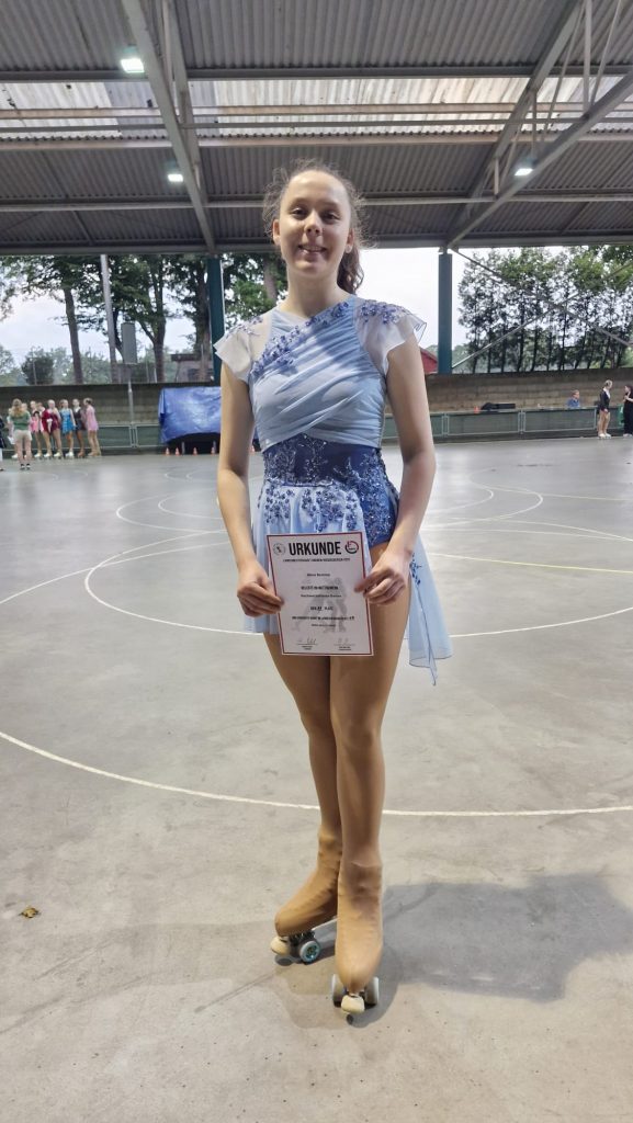 Junia Martel trat in der Gruppe Kunstläufer an und erkämpfte sich – trotz eines kleinen Patzers – einen hervorragenden 2. Platz! 🎉